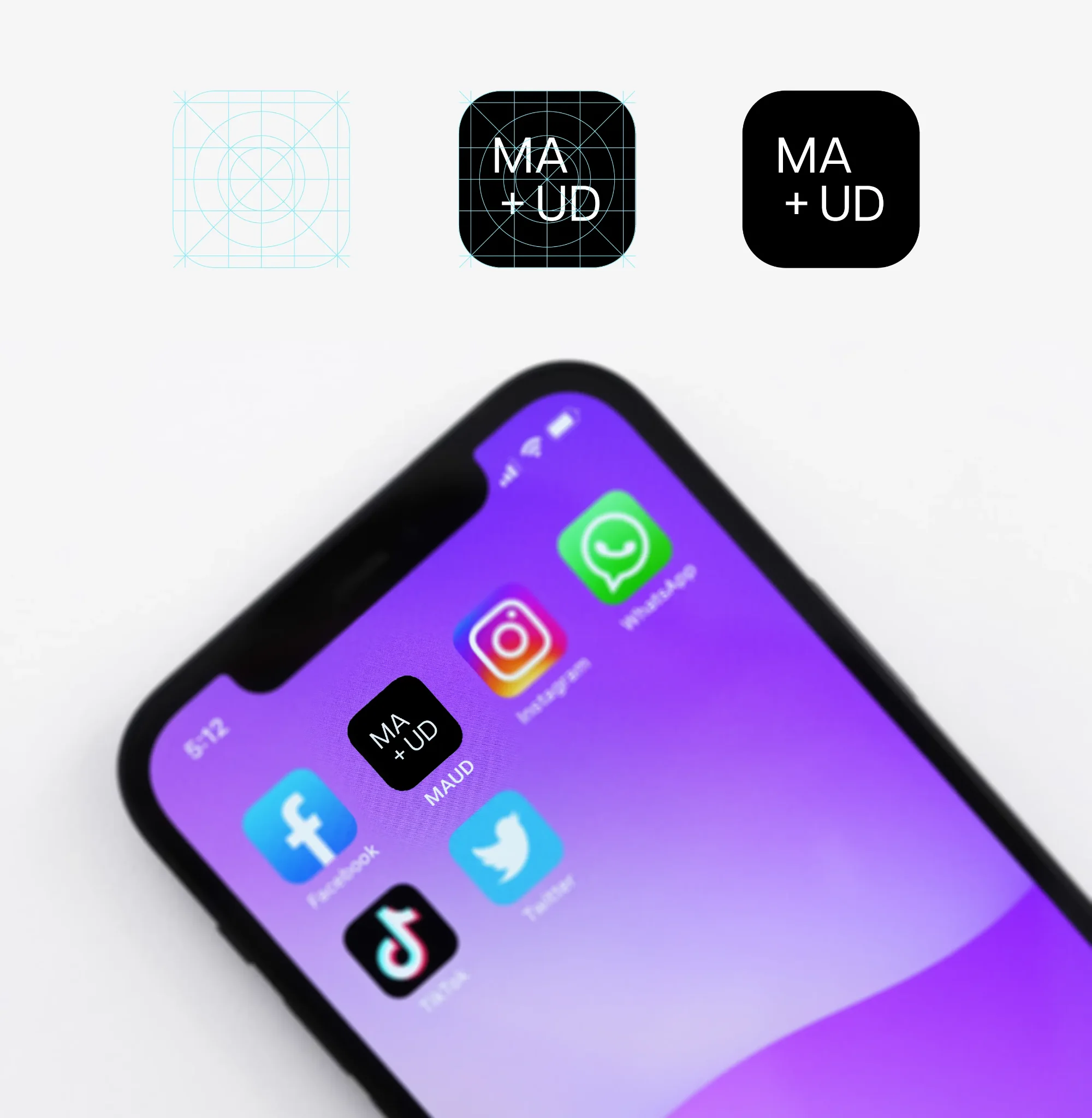Using the condensed logo variation, the MAUD logo is placed on a black background. This is perfect for Apple’s or Android’s app icon and for any social media profile.